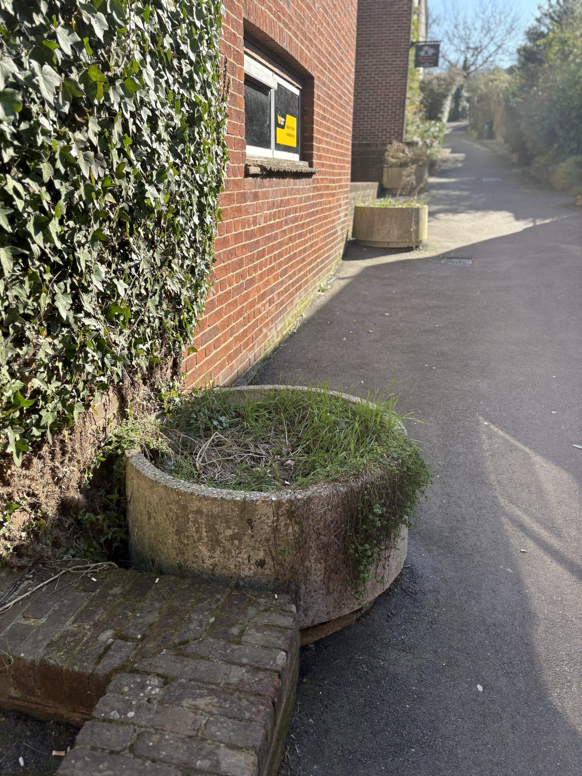 Before: The planter looking very sorry for itself in Chequer’s Yard.