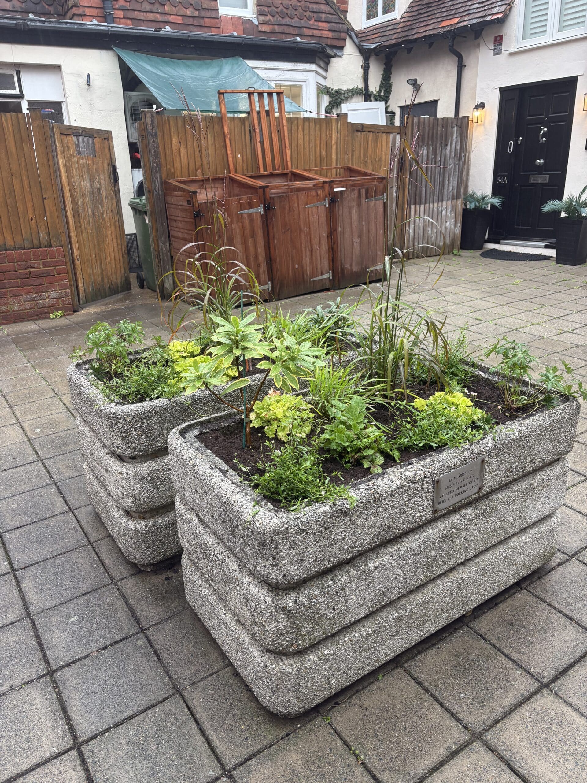 New artistic planter in Allen Court Dorking with fresh planting by Wild by Design